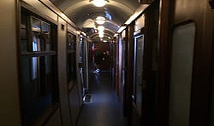 *Cukne sebou a probudí se.* Co? Už jsme tady? *Zmateně se rozhlíží, ale vlak stále jede.*