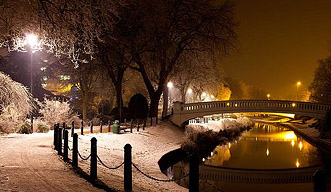 Prochází se krásně zasněženým parkem a sleduje jak Freya skotačí.