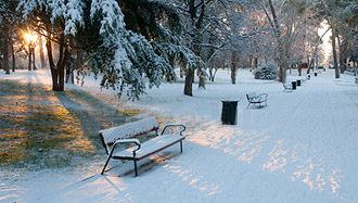 *Znovu se vydá napříč parkem a na jednom hezkém volném plácku sebou sekne do sněhu a udělá andílka. Pak se opatrně zvedne a skočí zpět na cestu. Opráší se a podívá se na své dílo. Usměje se a pokračuje v chůzi*
